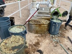 Due to ongoing sulfur deposition and labor intensive change-outs, Q2 Technologies was invited to test our triazine process utilizing the same tower. Calculations indicated that a 50% reduction in total product would achieve the same results as the Sodium Nitrite. Five drums of triazine and five drums of fresh water were added to the contractor.