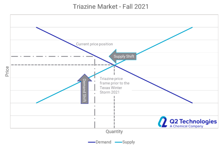 The chemical industry that supports the Oil & Gas industry, especially for Producers that use triazine or other amine-base chemistries to treat hydrocarbons, also felt the effects of this storm. Triazine based chemistries have been traditionally used to scavenge hydrogen sulfide (H2S) from natural gas and certain liquid hydrocarbon streams. The storm and summer have passed, but the long-term ramifications are still playing out, and for some the supply crunch is very much ongoing. Relief is on the horizon but not fast enough for some. Here’s a bit of history as to why we are seeing this near-commodity market acting the way it is and some forecasts for the supply/demand in 2022.